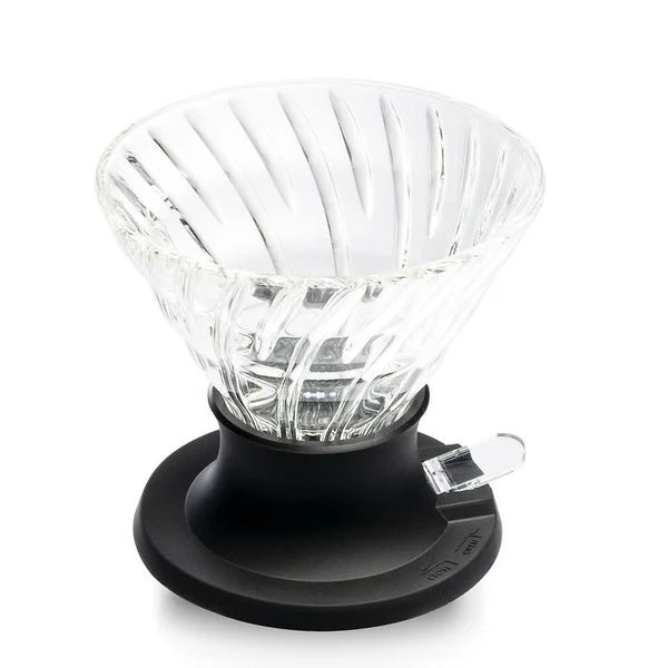 The Hario Switch is a 1-2 cup hybrid pour-over brewer that iterates on the original Hario V60. The Switch combines immersion with percolation through its stopper which toggles open by a lever. This brewer is more forgiving and provides an easier learning curve for those getting into pour-over, and also provides an alternative brewing technique for experts in the craft.