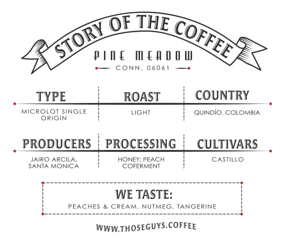 This coffee is also honey processed, which means some of the sticky fruit flesh known as mucilage is left on the beans when drying. It's a popular processing method popularized in Costa Rica, and now practiced the world over.