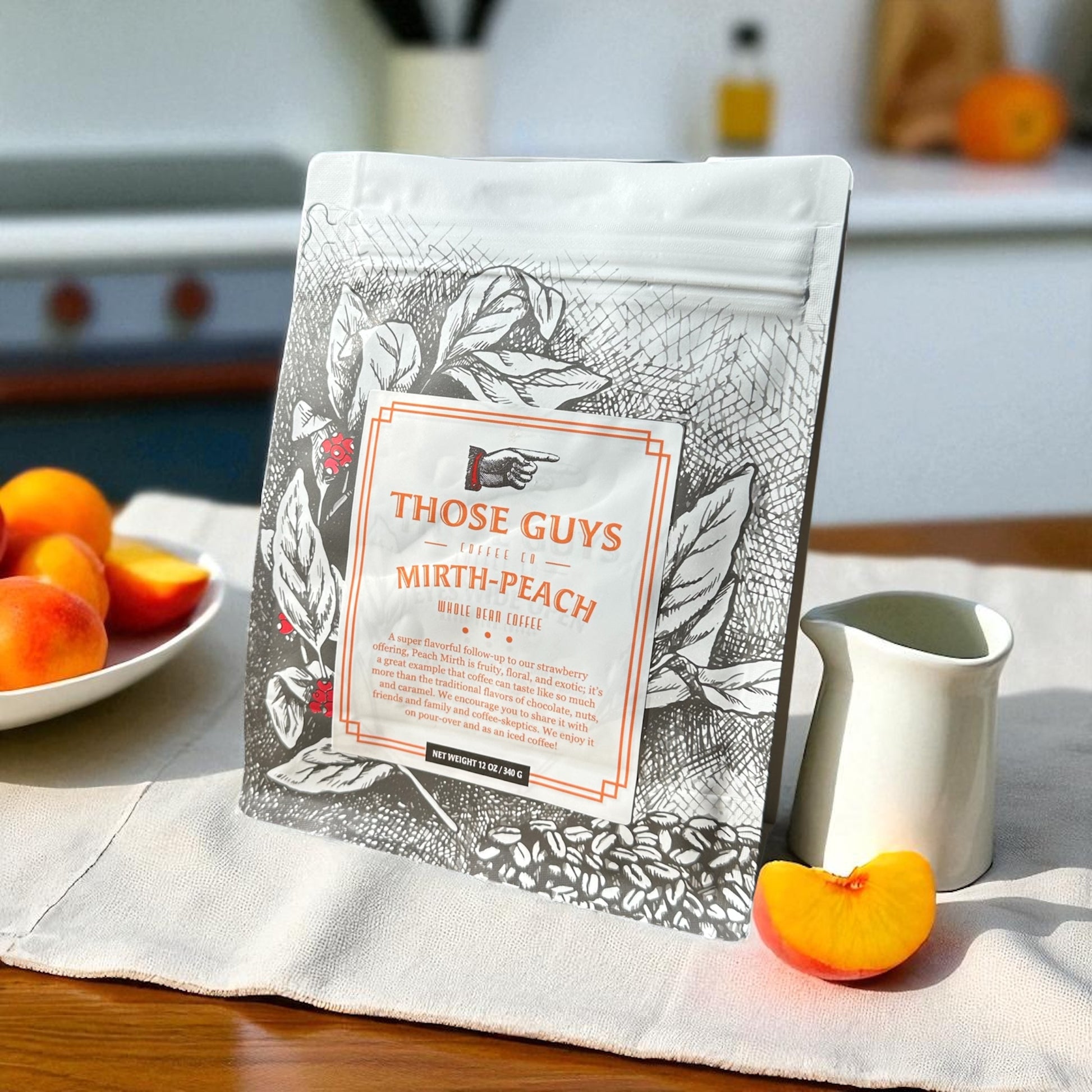 A super flavorful followup to our strawberry offering, Peach Mirth is fruity, floral, and exotic; it's a great example that coffee can taste like so much more than the traditional flavors of chocolate, nuts, and caramel. We encourage you to share it with friends, family, and coffee-skeptics. We enjoy it on pour-over and as an iced coffee!