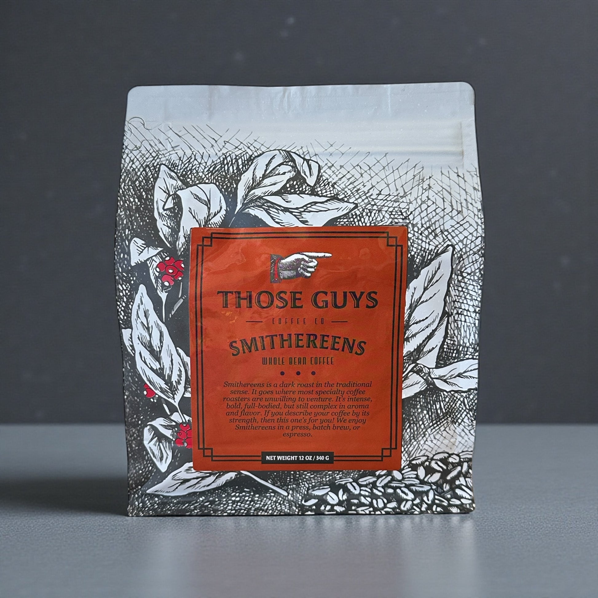 Smithereens is a dark roast in the traditional sense. It goes where most specialty coffee roasters aren't willing to venture. It's intense, bold, full-bodied, but still complex in aroma and flavor. If you describe your coffee by its strength, then this one's for you! We enjoy Smithereens in a press, batch brew, or espresso.